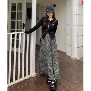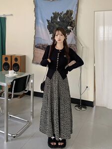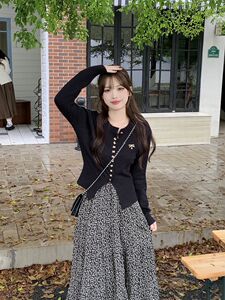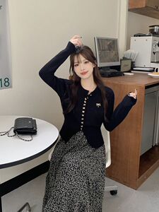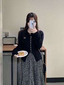 法式气质高腰显瘦针织开衫遮胯温柔碎花半身裙两件套温柔风减龄