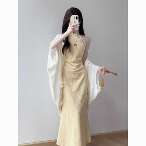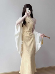 改良旗袍新款年轻款少女穿搭新中式连衣裙挂脖无袖高级气质