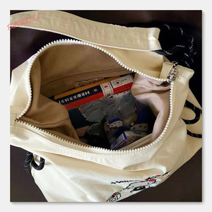 可爱卡通刺绣帆布包女新款大容量通勤托特包单肩斜挎包