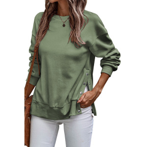2025年早秋新款纯色套头上衣女欧美休闲风开叉宽松遮肉长袖卫衣女