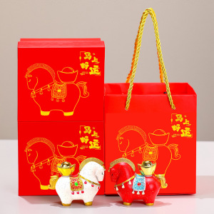新款元宝国潮马套装礼盒树脂工艺品摆件创意开业礼品乔迁新居送礼
