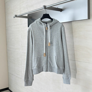 正确版原标V家25秋冬新款皮革抽绳连帽拉链休闲宽松卫衣男女同款
