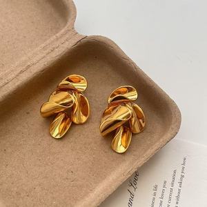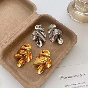 欧美冷淡风简约叶子耳钉复古树叶设计感光面扭花金属夸张耳环耳饰