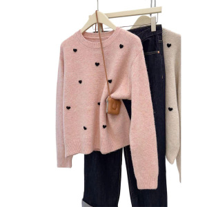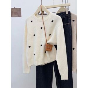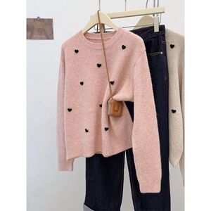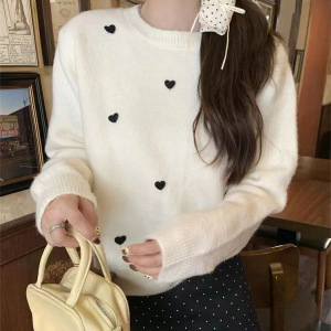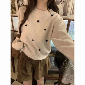 2025设计感立体爱心慵懒套头针织衫女秋冬季新款洋气打底毛衣上衣