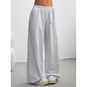 跨境外贸热销欧美风运动休闲裤宽松垂感抽绳松紧腰显瘦阔腿长裤子