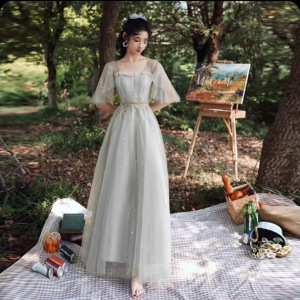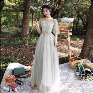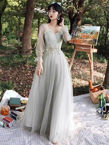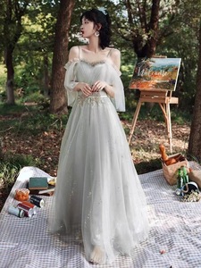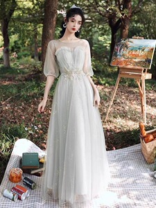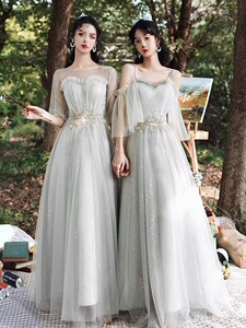 可伴娘服女款大码婚礼新款姐妹简约晚礼服连衣裙平时灰色伴娘服穿