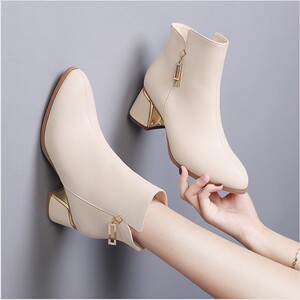 真软皮粗跟短靴女2025年秋冬新款低跟韩版时尚百搭妈妈靴子加绒