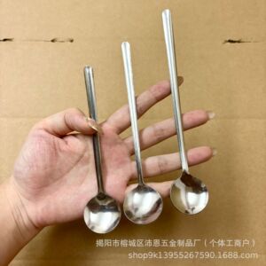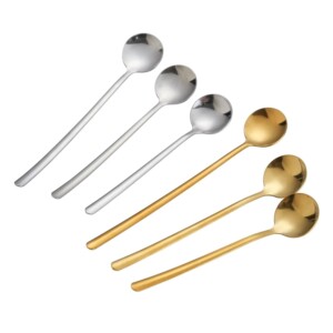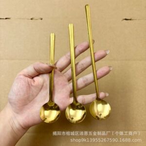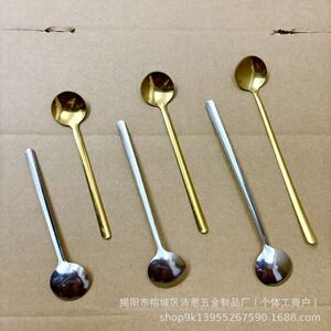 不锈钢勺子长柄冰勺高颜值咖啡勺金色小圆勺家用搅拌勺伴手礼批发