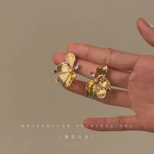 新中式国风耳环2025新款爆款高级感女人味金色花朵耳钉女