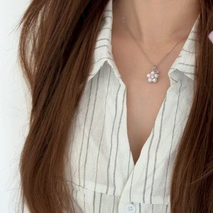 韩系爆闪珍珠花朵闪钻吊坠项链女轻奢甜美锁骨链小众秋冬项饰百搭