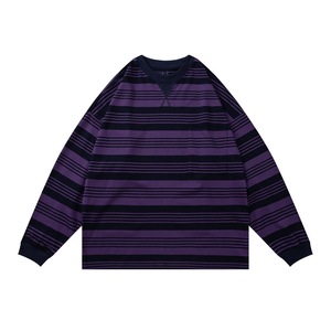 Reknat美式复古250g条纹长袖T恤潮流男打底衫春秋上衣外套PL1271