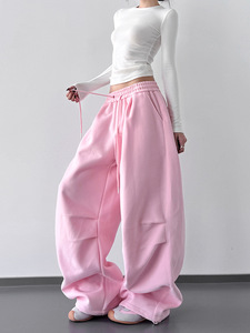 粉色少女运动裤女2025春秋季新款网红爆款韩系chic穿搭阔腿休闲裤