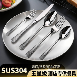 304不锈钢创意双面鱼尾纹牛排刀甜品勺高档酒店西餐具套装刀叉勺
