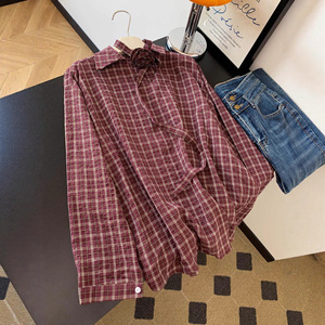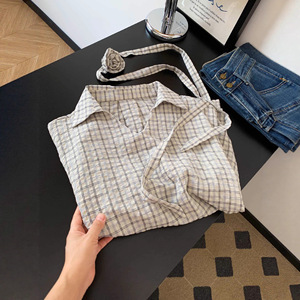 广州十三行高货爆款~飘带V领格子衬衫女秋季2025新款宽松套头上衣