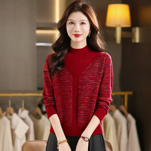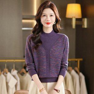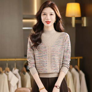 2025秋冬毛衫半高领花色绞花针织衫套头宽松长袖钉珠加厚毛衣女