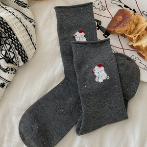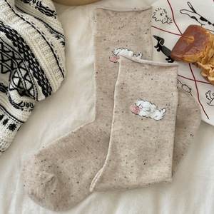 点子纱植绒潦草小狗卡通袜子女卷边中筒袜ins潮日系可爱卷边袜