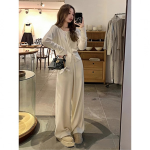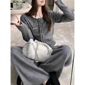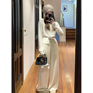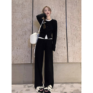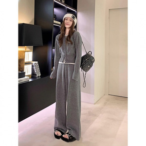 7605韩版时尚气质针织套装早秋新款减龄百搭显瘦上衣阔腿裤两件套