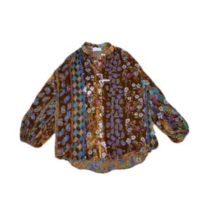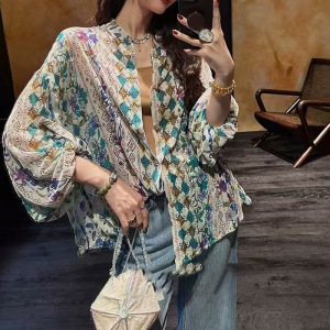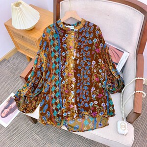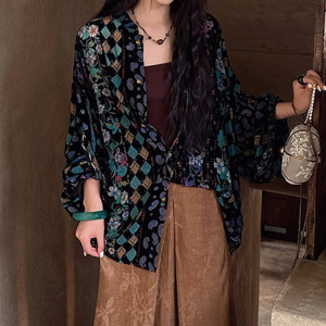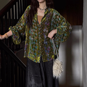 现货【花窗影】丝绒烂花琉璃窗纹衬衫2025秋季新款休闲百搭上衣