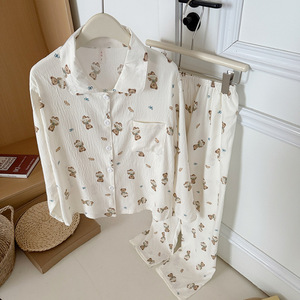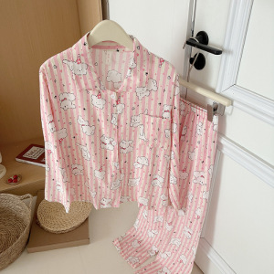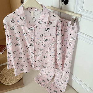 ins风春秋季睡衣女云朵棉薄款卡通印花甜美长袖长裤家居服套装