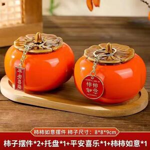 柿子罐2个+柿柿如意+平安喜乐+托盘