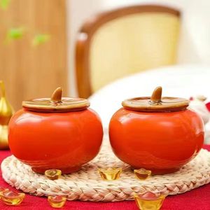 创意柿柿如意陶瓷茶叶罐柿子糖果罐密封储茶罐心想事橙茶叶罐摆件
