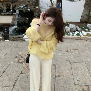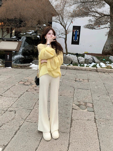 秋装女款2025年新款秋装韩系氛围感穿搭小鸡黄针织衫毛衣chic上衣
