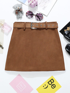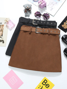 复古咖色麂皮绒包臀裙韩国东大门女装高腰修身防走光时髦短裙9654