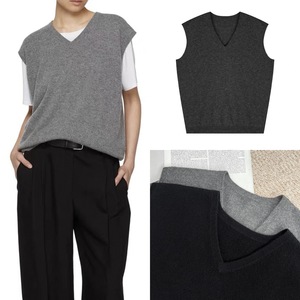 HOUSE 25秋冬 黑灰两色高级简约品质山羊绒针织宽松落肩背心马甲