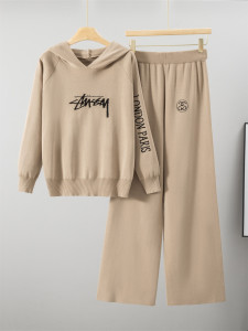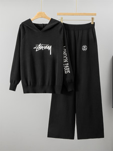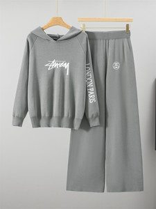 跨境时尚显瘦2025新款秋冬休闲字母高腰阔腿裤两件套女