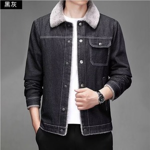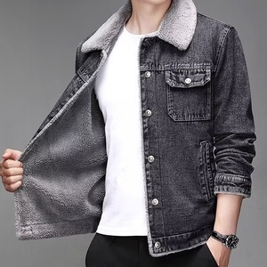 跨境亚马逊牛仔夹克外套男士冬季新款潮流羊羔绒加绒加厚保暖棉衣