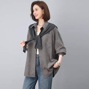2025春秋新款时尚百搭休闲宽松显瘦长袖衬衫女设计感小众上衣外套