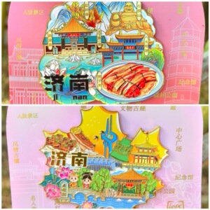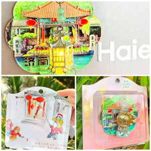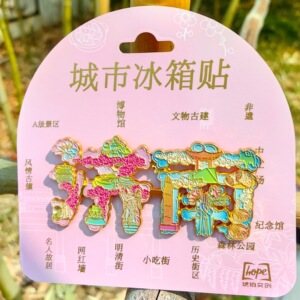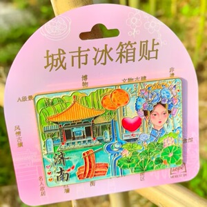 济南山东泉城趵突泉大明湖冰箱贴金属旅游文创礼品纪念品琥珀文创