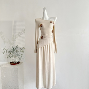 2025早秋温柔浪漫长袖针织衫套头上衣女高腰半身裙套装
