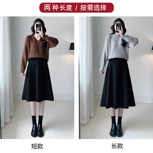 黑色半身裙女秋季2025新款高腰今年流行爆款显瘦a字裙中长款伞裙
