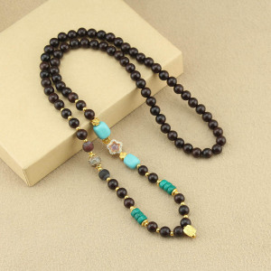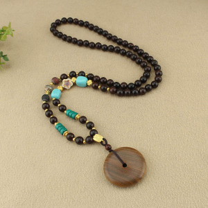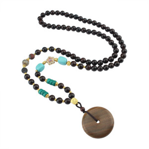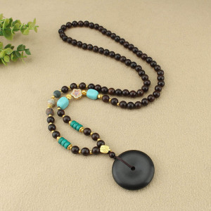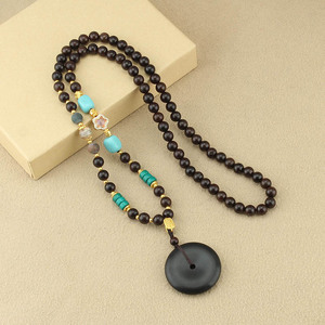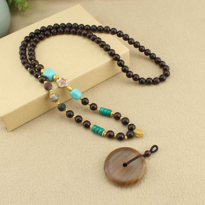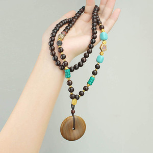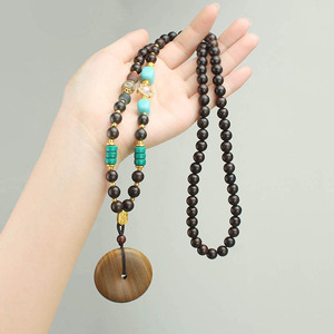 复古檀木平安扣项链新中式国风木珠串珠长款毛衣链文艺民族风配饰