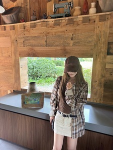 obliviae 纽约留学生-格纹撞色松弛衬衫女早秋时髦衬衣