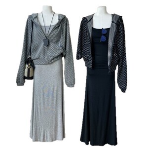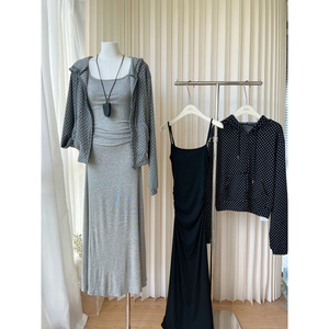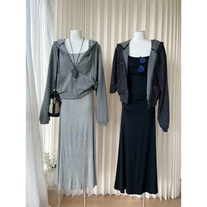 2025新款韩系薄款休闲带帽波点开衫上衣连衣裙两件套百搭套装女