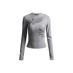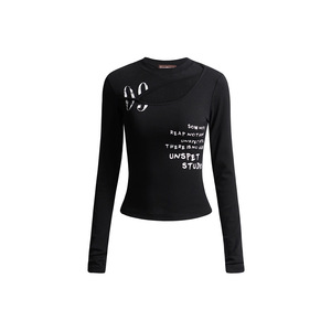UNSPET十三行秋季新款圆领纯欲辣妹设计感长袖显瘦上衣T恤女20027