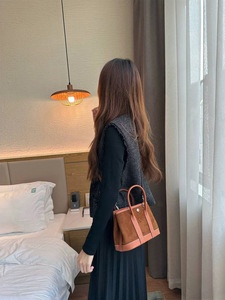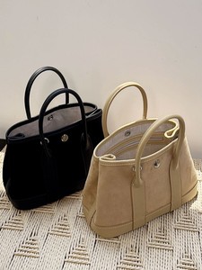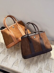 磨砂皮拼接头层牛皮花园包麂皮撞色23cm手提包真皮单肩斜挎小包女