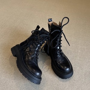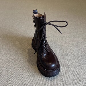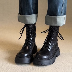 羊皮版~2025八孔马丁靴女系带春秋新款机车靴厚底短靴女中跟