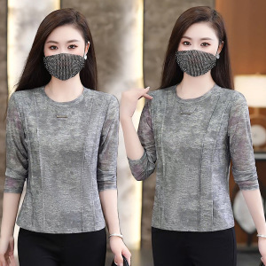 2025早秋新款时尚修身显瘦长袖T恤女灰色圆领简约打底衫薄款上衣
