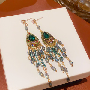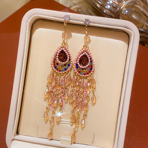 银针镶钻水滴玻璃流苏耳环轻奢高级感耳钉民族风时尚百搭耳饰批发
