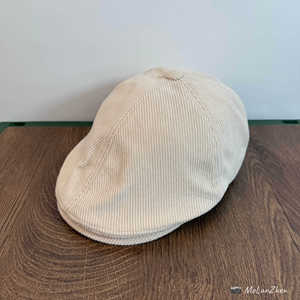 日系文艺复古时尚前进帽秋冬季灯芯绒报童帽百搭显脸小反戴鸭舌帽