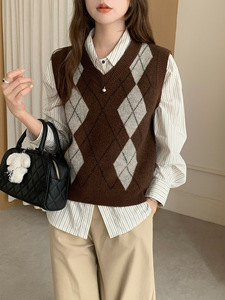 2025V领羊毛衫极简气质复古通勤宽松百搭时尚显瘦上衣感优雅马甲