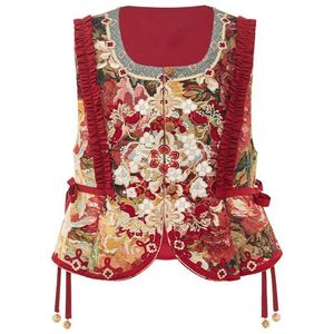 十三余小豆蔻儿[红榴秋焰]民族风绣花马甲上衣破裙汉服成人女款冬