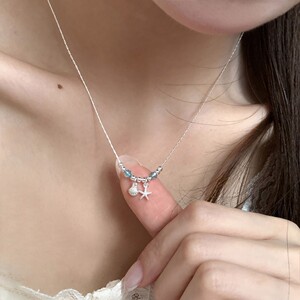 S925纯银蓝色珠子星星串珠项链女小众高级感轻奢气质百搭新品配饰