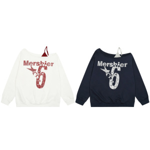 2025秋季新款美式复古辣妹风字母印花斜肩长袖T恤女宽松百搭上衣