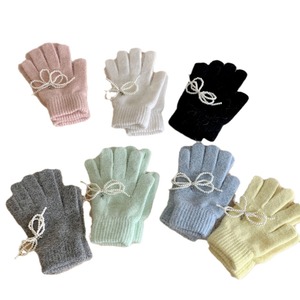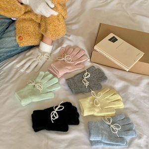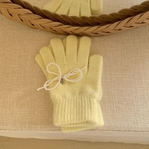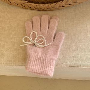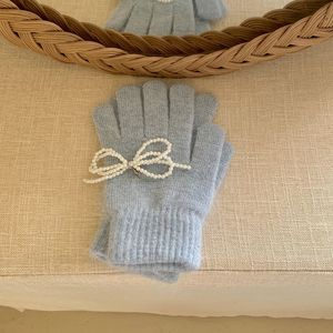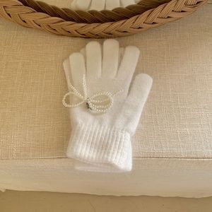 ins风韩版珍珠蝴蝶结手套女冬天保暖分指针织骑行款甜美可爱纯色