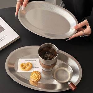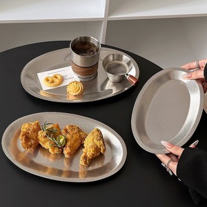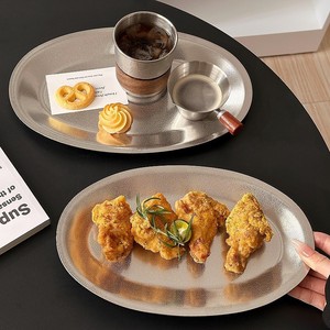 不锈钢雪花纹防刮椭圆餐盘咖啡厅托盘面包蛋糕甜品盘点心西餐盘