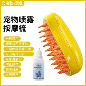 跨境芒果宠物梳子猫狗电动蒸汽喷雾刷按摩梳一键喷雾防飞毛梳毛器